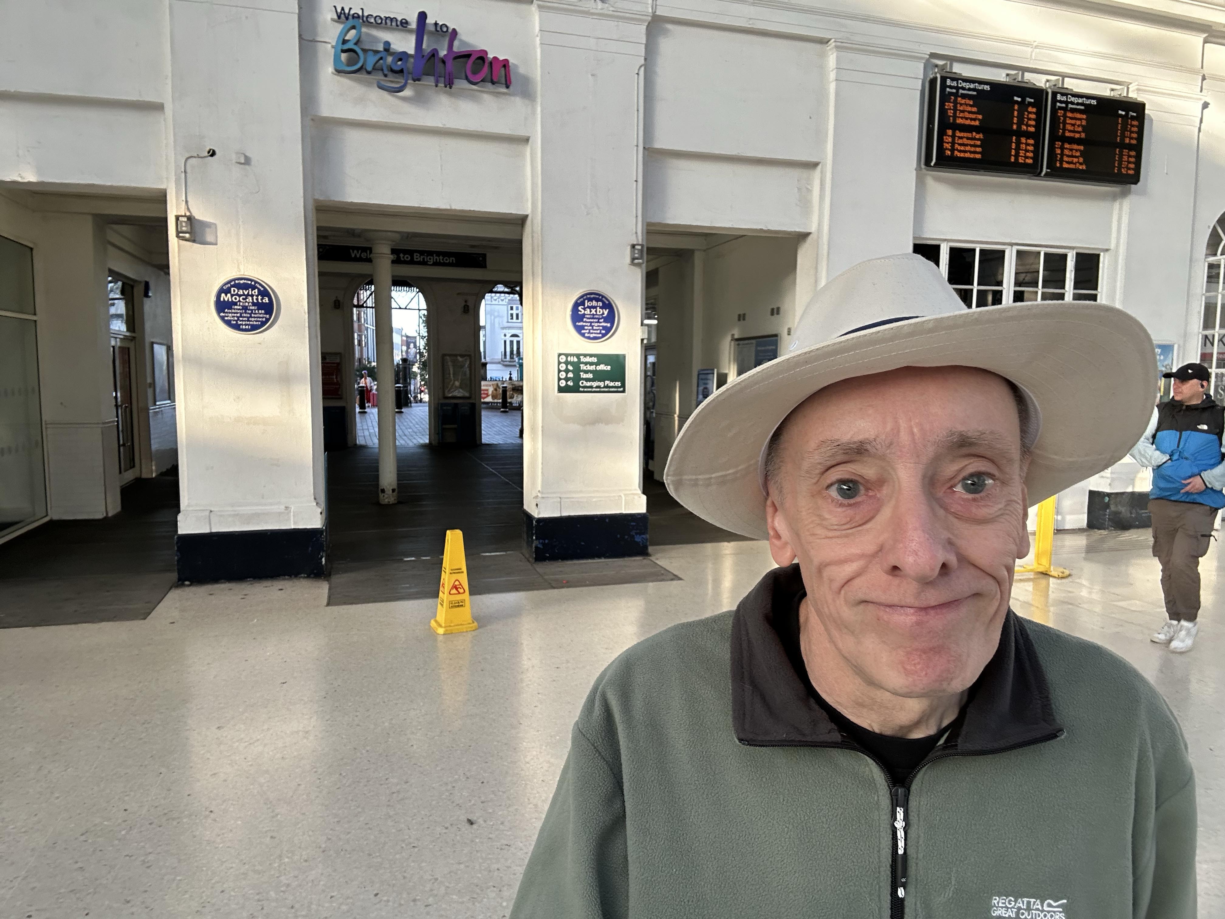 For the first time, I take note of the 'Blue Plaques' that you notice behind me inside the station. Both names are ones I encountered during previous walks. The work of John Saxby I saw commemorated on my first Brighton walk. Mocatta Mews is a minor street 500 metres from my home in Redhill. Had no idea of the architectural connection.