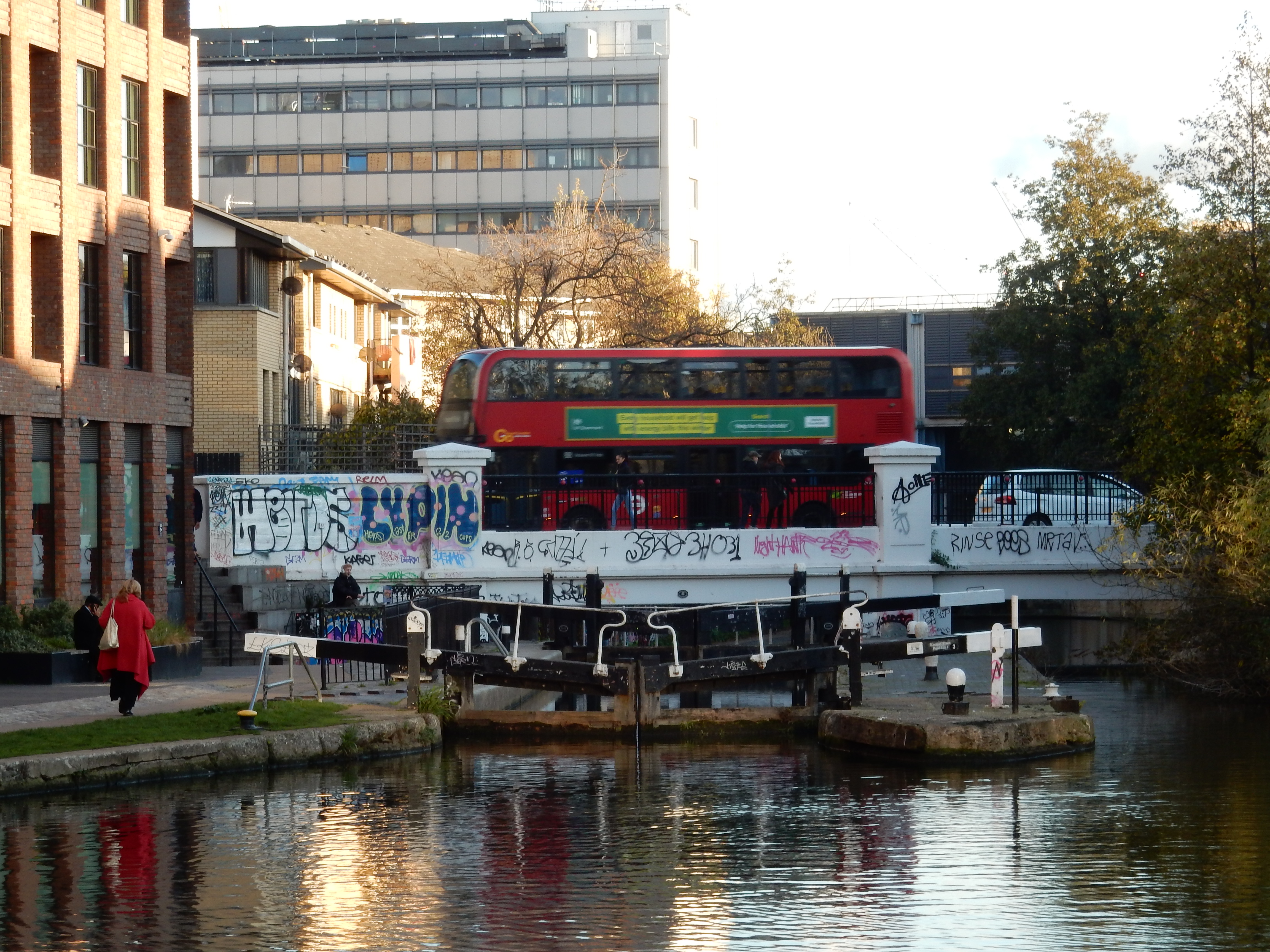 A dive under the arches takes me to Hawley Wharf on the Regents Canal. This section has recently been redeveloped, along with much else in the vicinity of King's Cross. The grim, 70s accommodation that was here is now replaced by even grimmer 2010s blocks. The next mile or so is north-side canal towpath past lock and under Bridge. There's clearly scope for a future walk taking in the whole nine miles. Leave the canal, though, just before the lines into King's Cross. I note, for the first time, that these had to tunnel under the canal: a significant engineering feat.