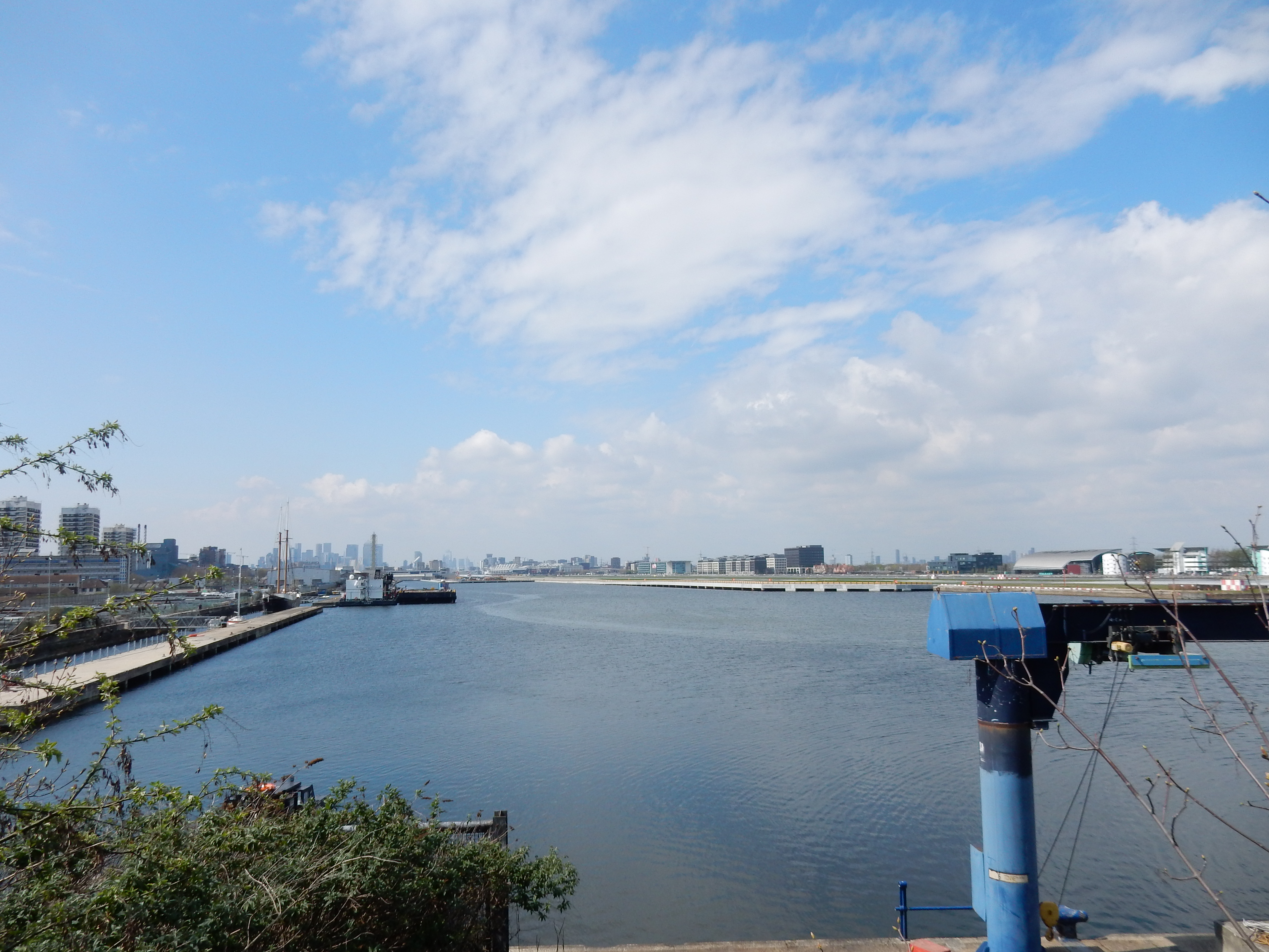 Out with GPS now to get you the rest of the way to Ilford. I looked at routes on the east bank of the River Roding, but they aren't shorter nor, on the day, did they spare me any mud. The route shown is pretty much what the OS app selected, and I doubt that you could do much better. Anyway, pause a couple of minutes before going over the Albert Dock to watch planes take off from the City Airport.