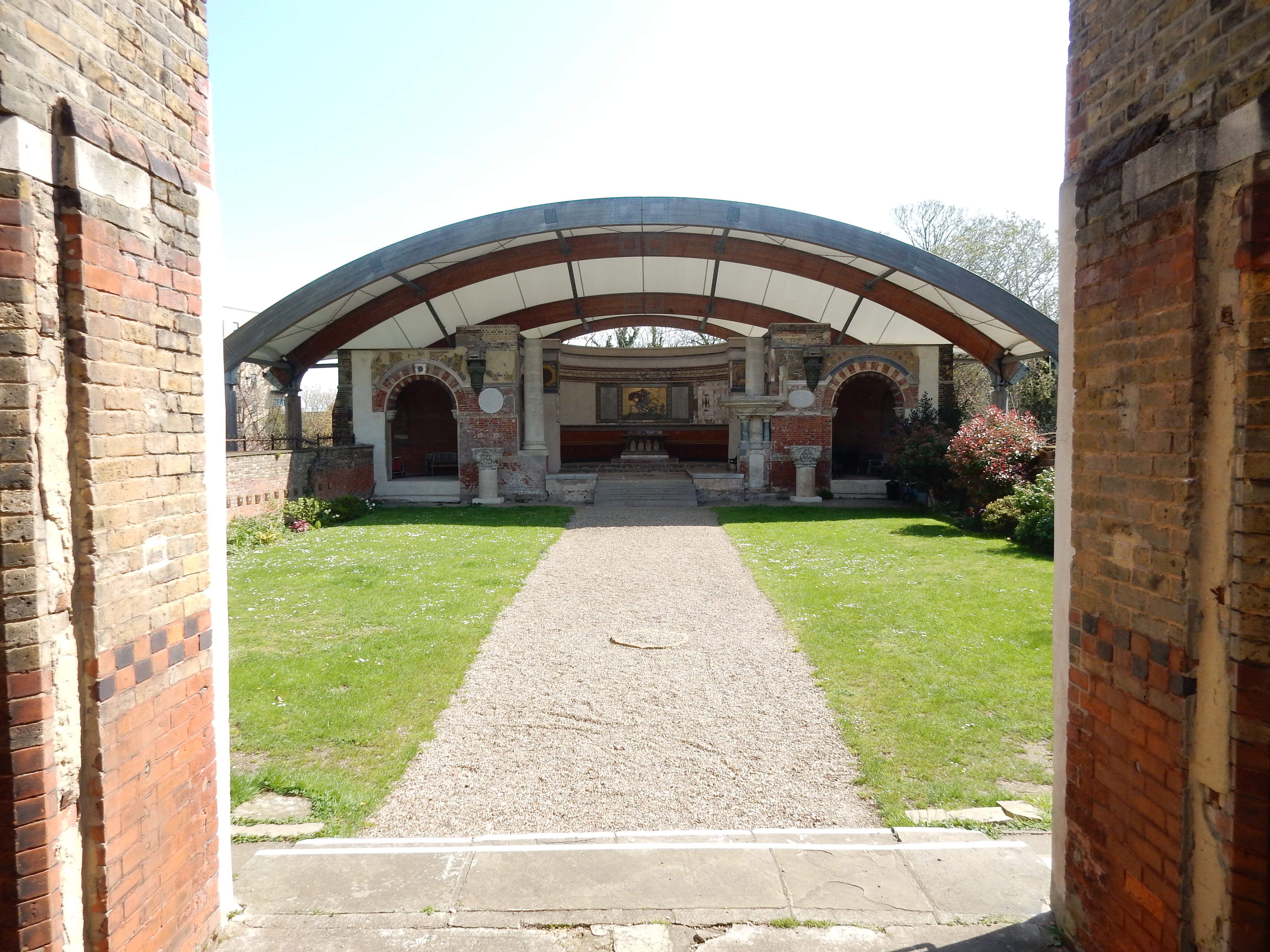 All the same, the first half of the walk is very easy. You point yourself north and keep going until you hit the Thames. Simples. If you wish, stop to admire the old fashioned park at Eltham. BTW, the cul-de-sac on the south side of the Pleasaunce is called Edith Nesbit Walk as tribute to that author who lived in Well Hall. Have coffee at the Eltham Cafe,[7] take a photo of St George's Garrison Church, fire off another shot at the Royal Artillery Barracks.